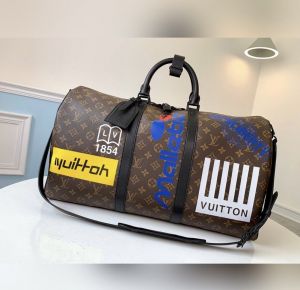 LOUIS VUITTO.N BROWN KEEPALL BANDOURLIERE 50 LOGO MONOGRAM PREMIUM DUFFLE BAG