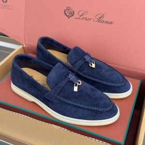 Loro Piana Summer Walk Charm Suede Loafers navy blue