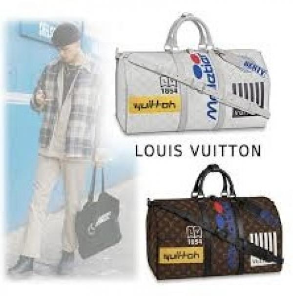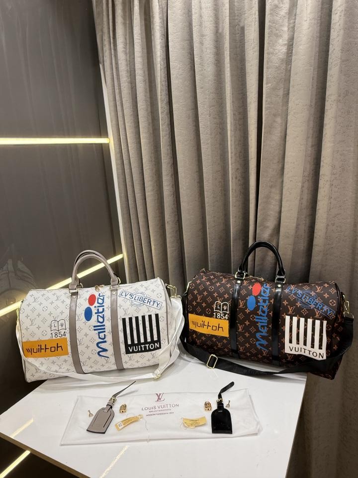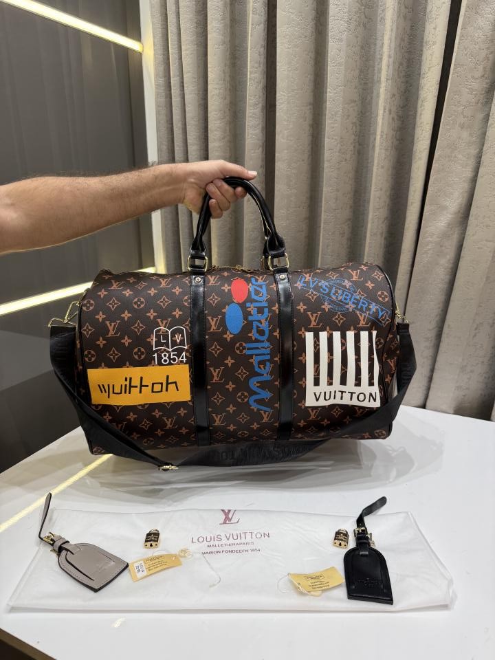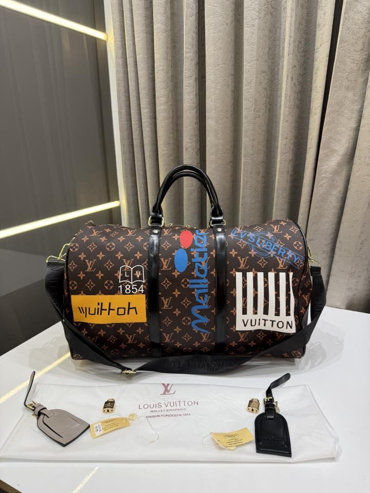 LOUIS VUITTO.N BROWN KEEPALL BANDOURLIERE 50 LOGO MONOGRAM PREMIUM DUFFLE BAG